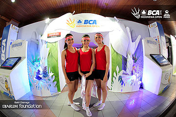 Para usher berpose di pintu masuk utama BCA Indonesia Open Super Series Premier 2015.