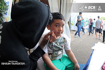 Seorang anak melakukan face painting untuk mendukung negara favoritnya.