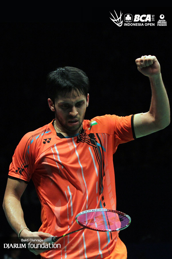 Ekspresi Parupali Kashyap (India) saat mencetak poin.
