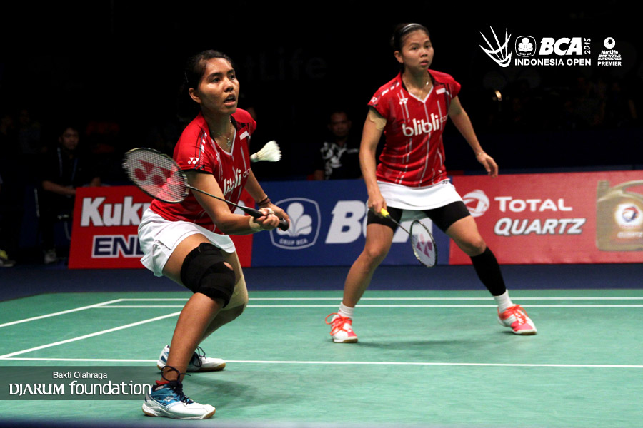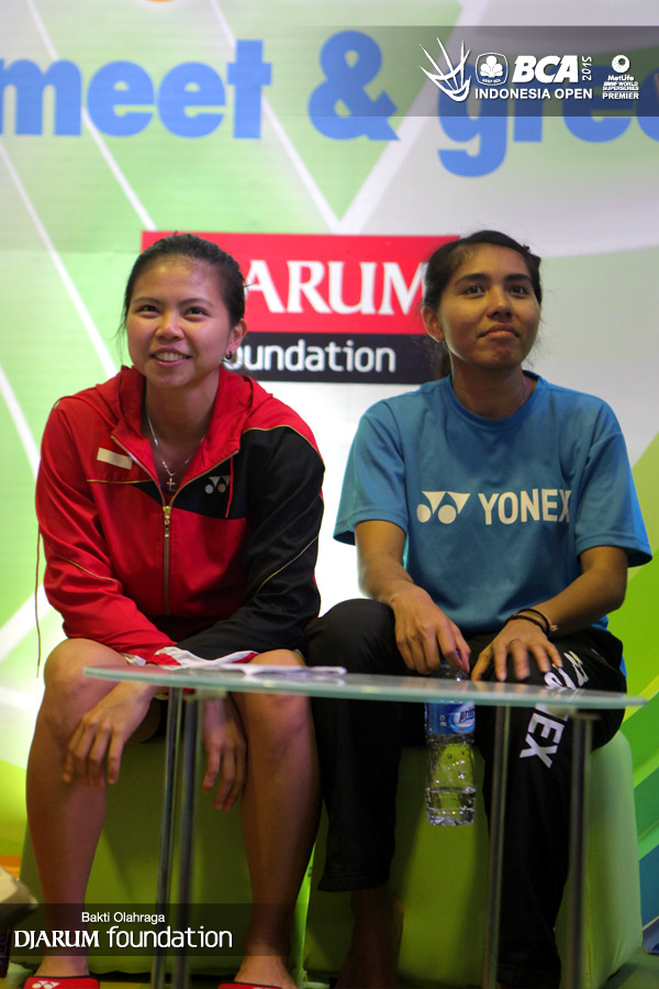 Nitya Krishinda M dan Greysia Polii (Indonesia) saat melakukan meet and greet.