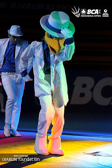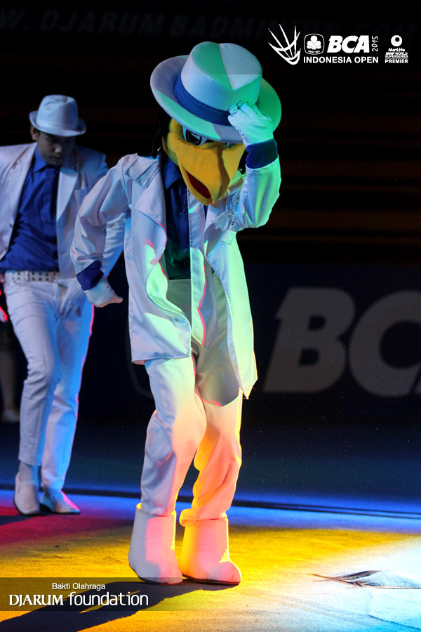 Aksi para dancer maskot turut memeriahkan gelaran BCA Indonesia Open Super Series Premier 2015.