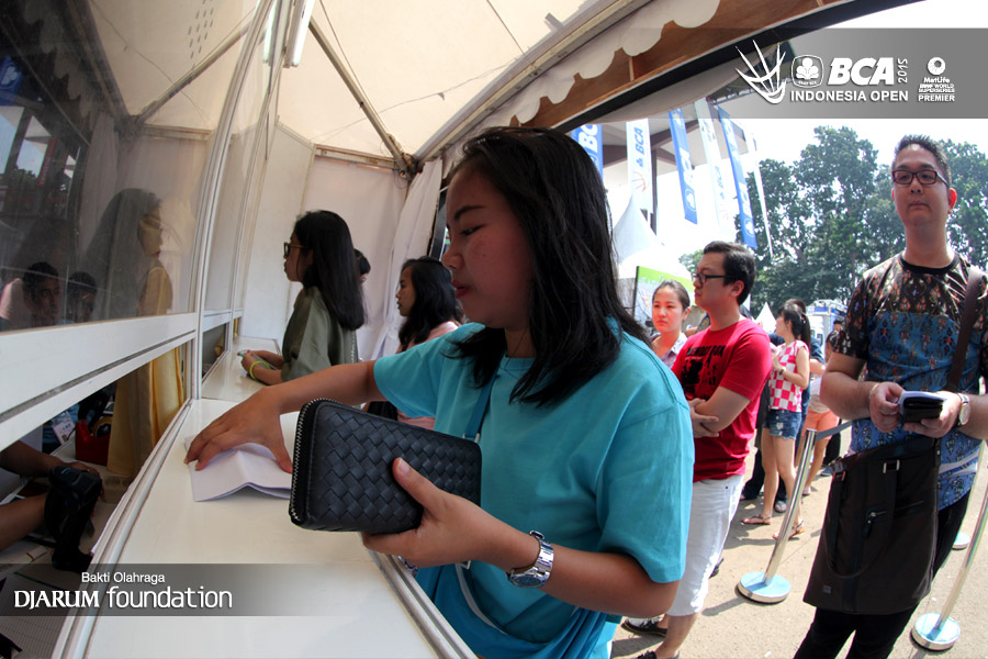 Salah satu pengunjung mengantri di loket tiket.
