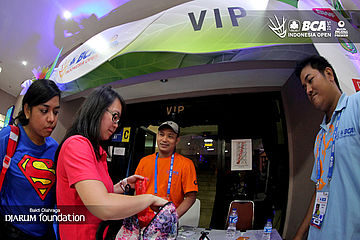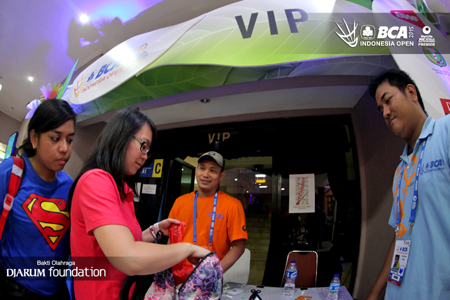 Salah seorang pengunjung di VIP Gate BCA Indonesia Open Super Series Premier 2015.