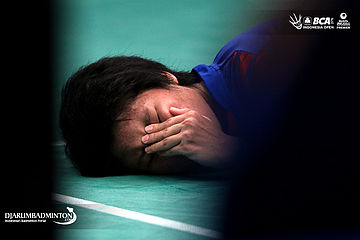 Jessica Muljati (Indonesia) terjatuh kesakitan