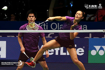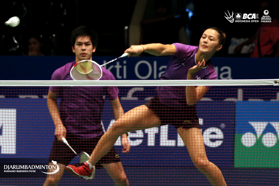Matthew Chau/Gronya Somerville (Australia) melepaskan serangan