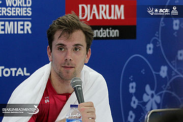 Jan O Jorgensen (Denmark) saat sesi tanya jawab bersama para wartawan