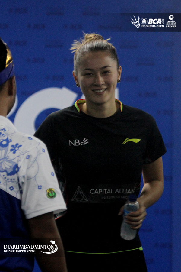 Saina Nehwal (India) bersiap memasuki arena pertandingan