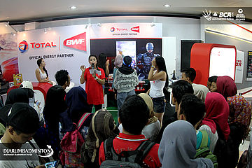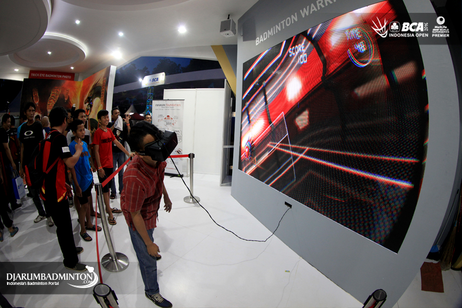 Salah seorang pengunjung sedang bermain games di booth Djarum Foundation