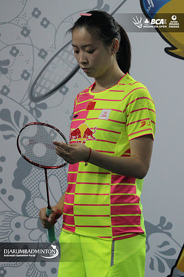 Huang Yaqiong (Tiongkok) bersiap memasuki arena pertandingan