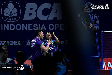 Edi Subaktiar/Gloria Emanuelle (Indonesia) menyambut pengembalian