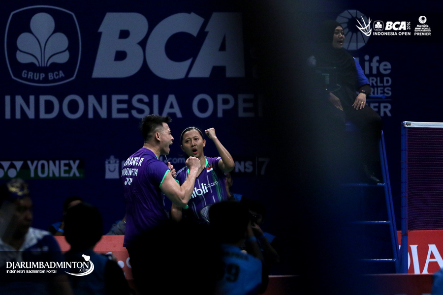 Selebrasi kemenangan Riky Widianto/Richi Dilli (Indonesia)
