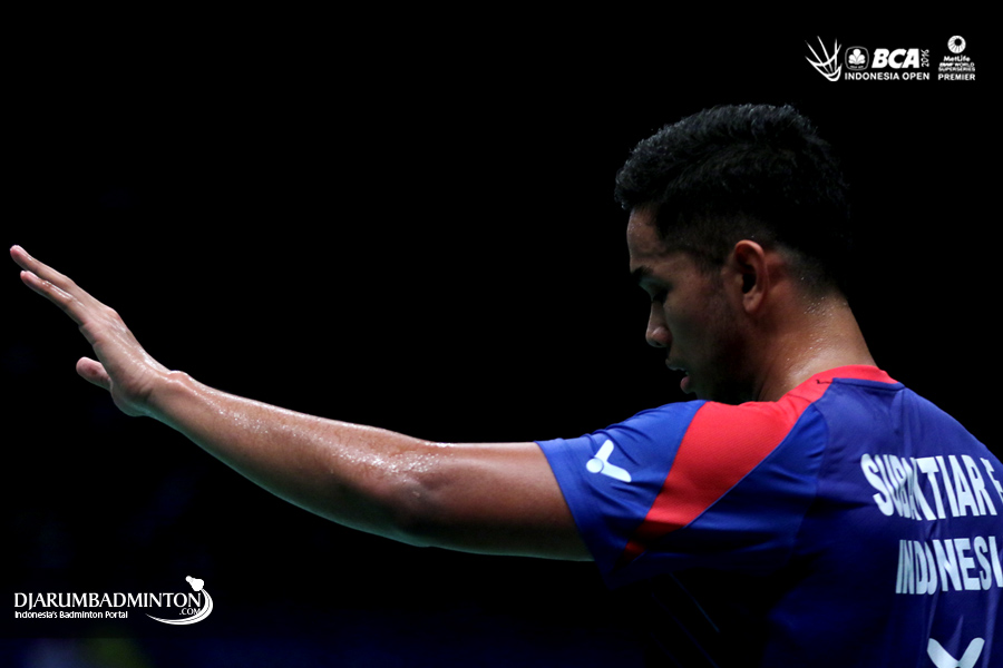Edi Subaktiar (Indonesia) berkonsentrasi sebelum menerima serve