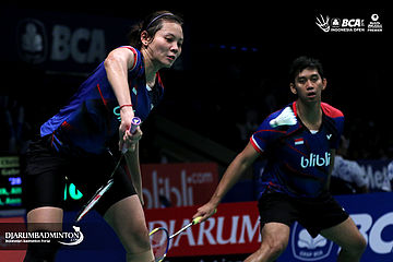 Alfian Eko/Annisa Saufika (Indonesia) menghadang serangan