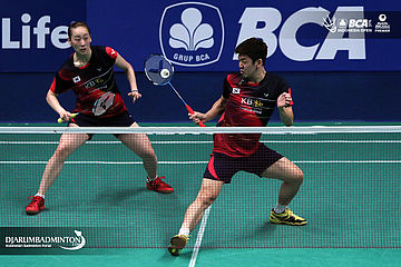Lee Yong Dae/Lee So Hee (Korea) mengembalikan shuttlecock