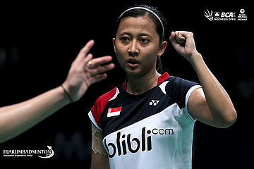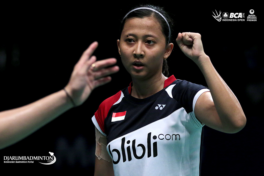 Ekspresi Richi Puspita Dili (Indonesia) saat berhasil mencetak poin