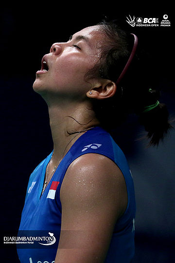Ekspresi Greysia Polii (Indonesia) saat kehilangan poin
