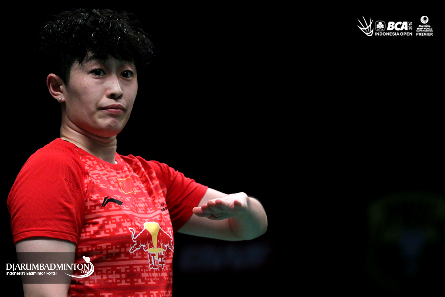 Ekspresi Saina Nehwal (India) saat kehilangan poin