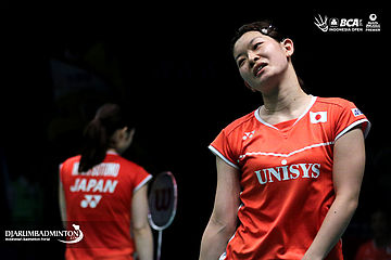 Ekspresi kekecewaan Ayaka Takahashi/Misaki Matsutomo (Jepang)