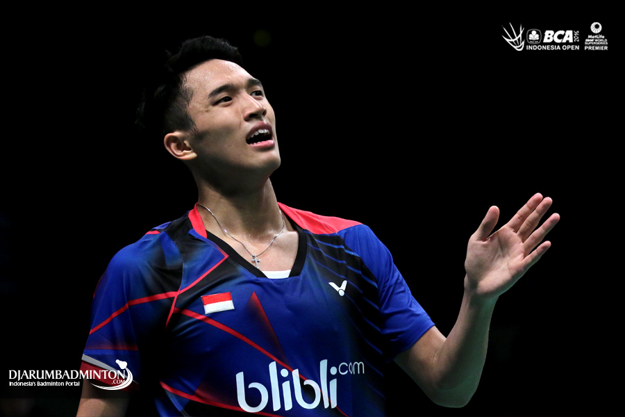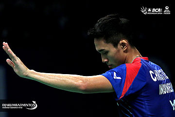 Jonatan Christie (Indonesia) bersiap menyambut serve