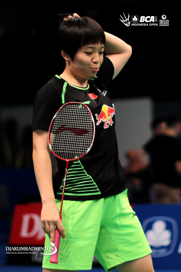 Ekspresi Chen Qingchen (Tiongkok) saat berlatih