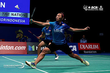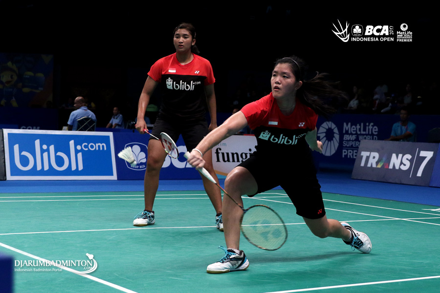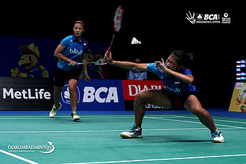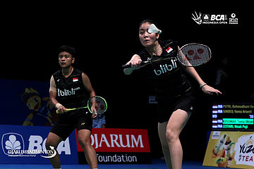 Jauza Fadhila Sugiarto/Serena Kani (Indonesia) menyambut pengembalian