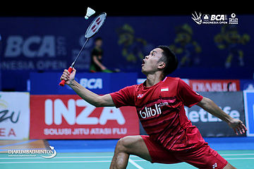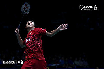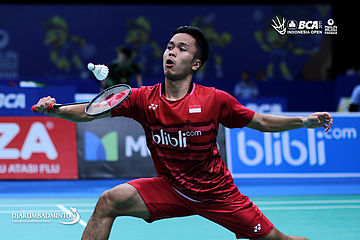 Anthony Sinisuka Ginting (indonesia) menghadang serangan