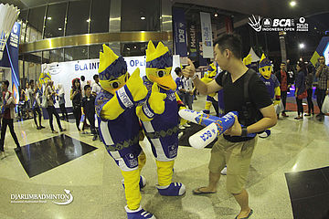 Maskot BIO menghibur pengunjung di gelaran BCA Indonesia Open 2017