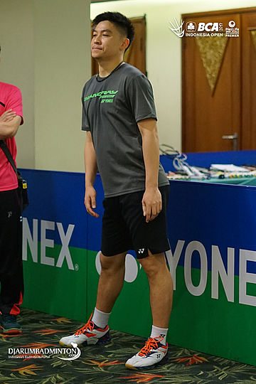 Tan Boon Heong (Malaysia) melakukan pemanasan