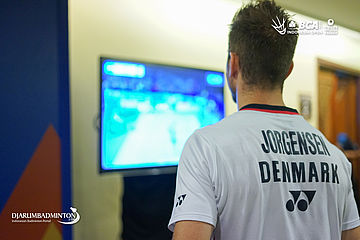 Jan O Jorgensen (Denmark) melihat pertandingan yang sedang berlangsung