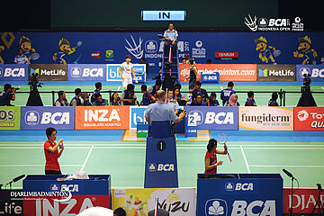 Fitriani (Indonesia) dan Cheung Ngan Yi (Hong Kong) saat jeda istirahat