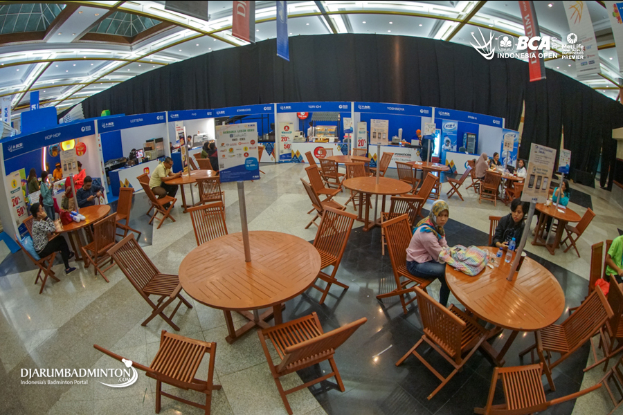 Booth makanan yang tersedia di dalam Plenary Hall JCC Senayan