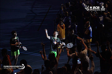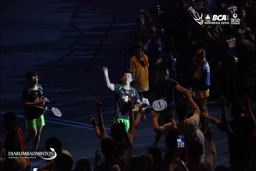Zheng Siwei dan Chen Qingchen (Tiongkok) saat memasuki lapangan pertandingan