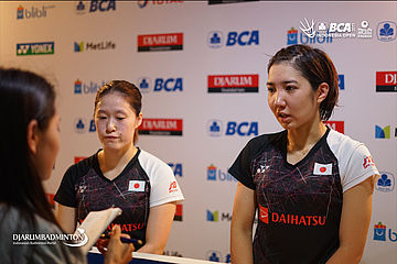 Naoko Fukuman dan Kurumi Yonao (Jepang) saat menjawab pertanyaan wartawan
