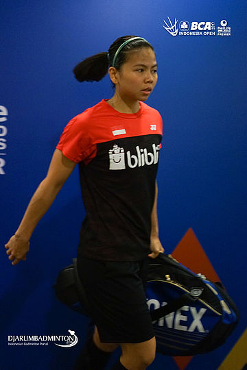Greysia Polii (Indonesia) bersiap memasuki lapangan pertandingan
