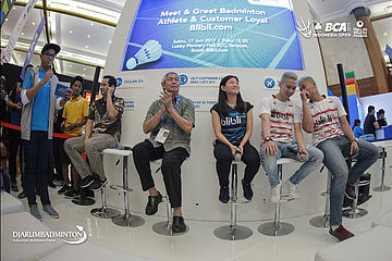 Kevin Sanjaya (Indonesia) saat meet and greet di booth blibli.com