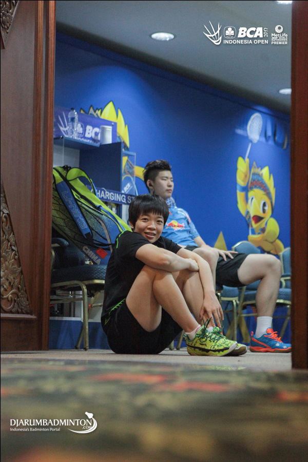 Ekspresi Chen Qingchen (Tiongkok) saat berada di player lounge