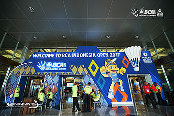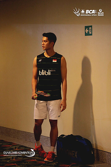 Panji Ahmad Maulana (Indonesia) melakukan pemanasan sebelum bertanding