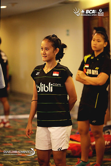 Ekspresi Bunga Fitriani (Indonesia) saat melakukan pemanasan