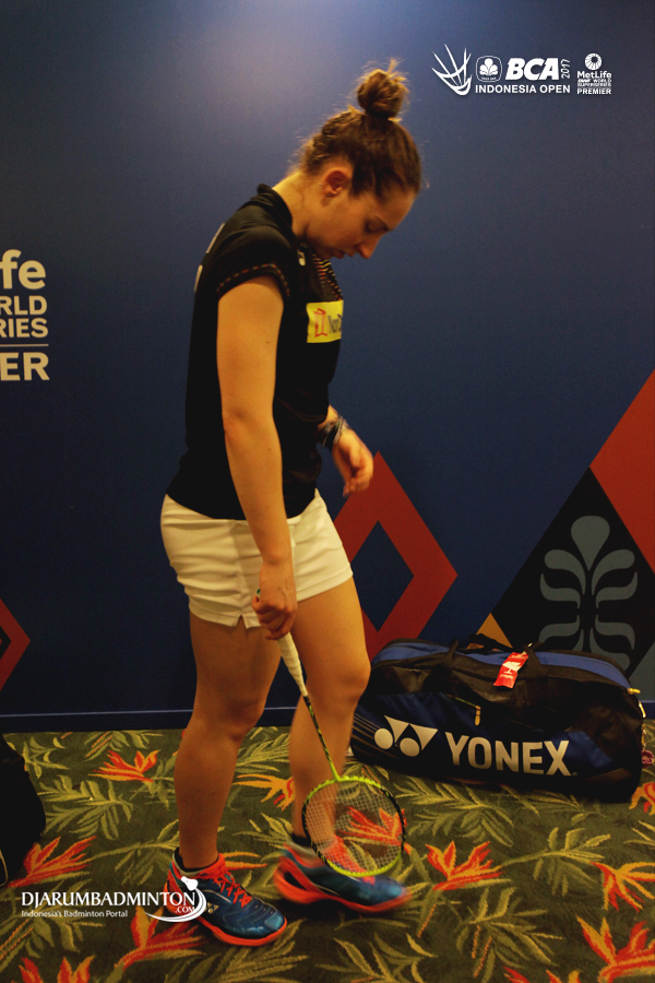 Natalia Koch Rohde (Denmark) melakukan pemanasan sebelum bertanding