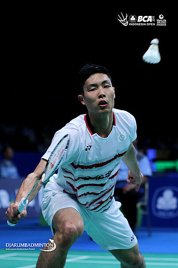 Chou Tien Chen (Taipei) bersiap melepaskan smash