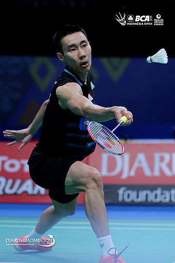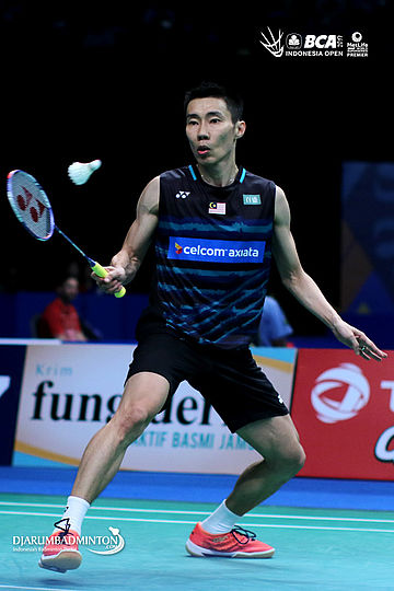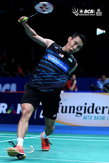 Lee Chong Wei (Malaysia) mengembalikan shuttlecock