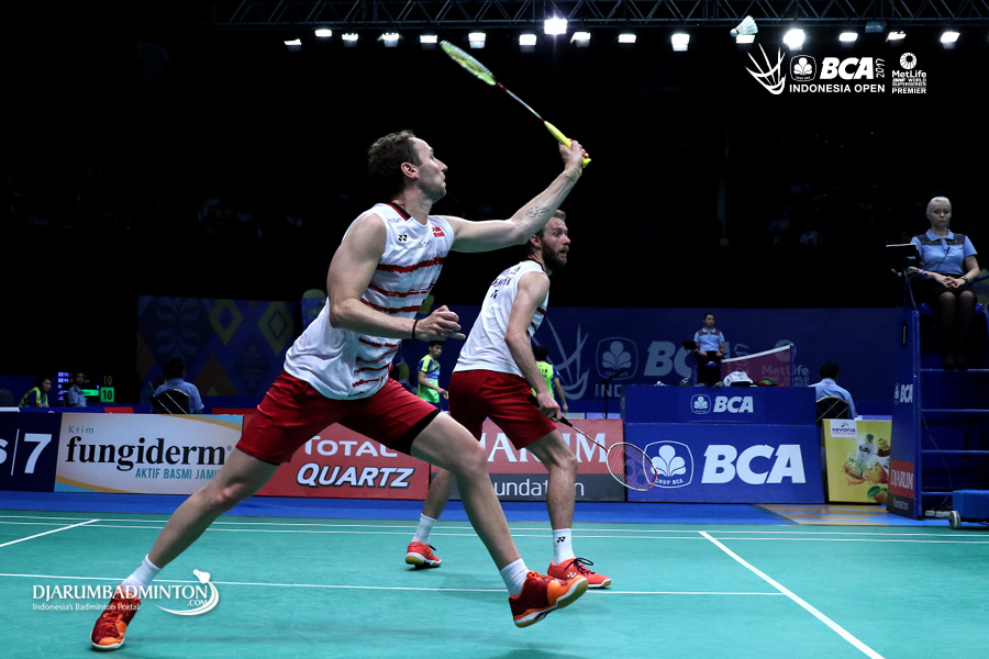 Kekompakan Carsten Mogensen/Mathias Boe (Denmark) di lapangan