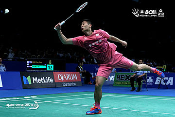 Chen Long (Tiongkok) menyambar pengembalian tanggung