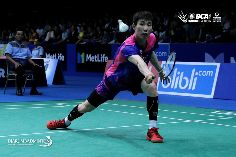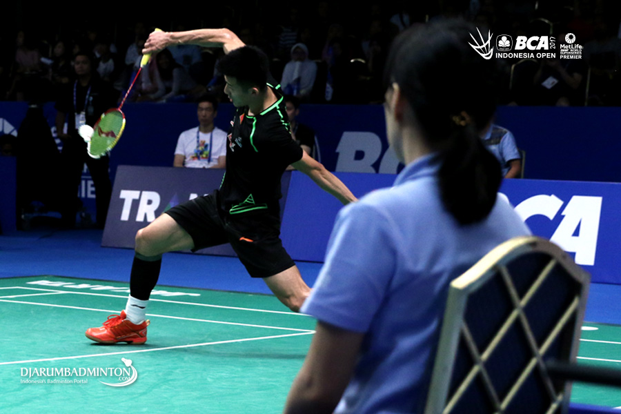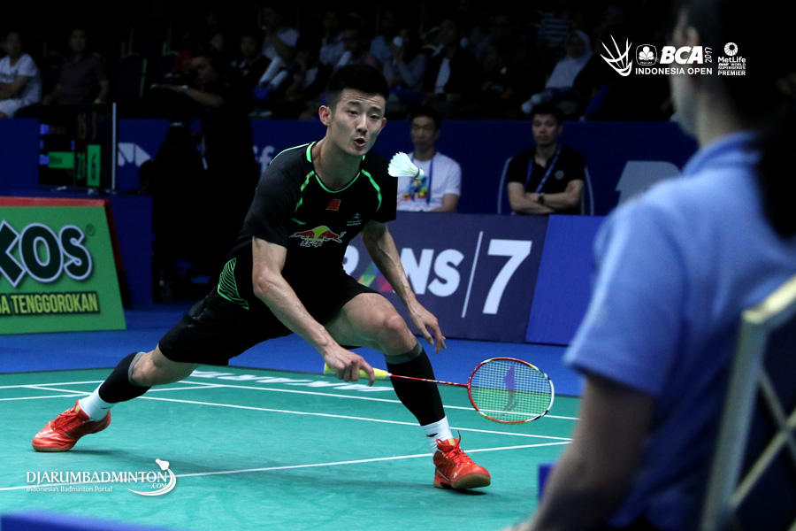 Chen Long (Tiongkok) bersiap menghadang serangan