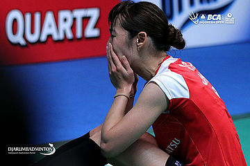 Ekspresi Tontowi Ahmad/Liliyana Natsir (Indonesia)