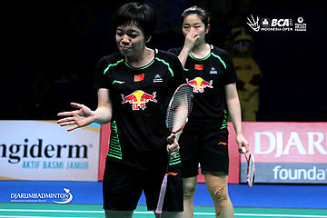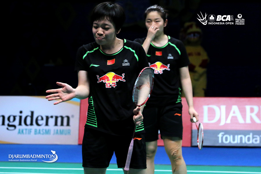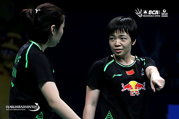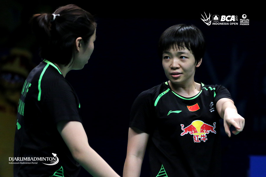Chen Qingchen/Jia Yifan (Tiongkok) saling berkoordinasi di lapangan