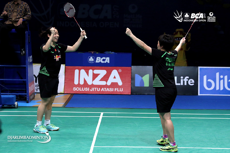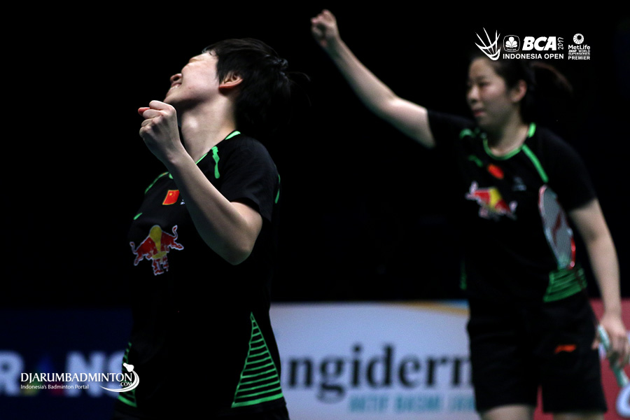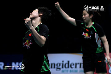Selebrasi kemenangan Chen Qingchen/Jia Yifan (Tiongkok)