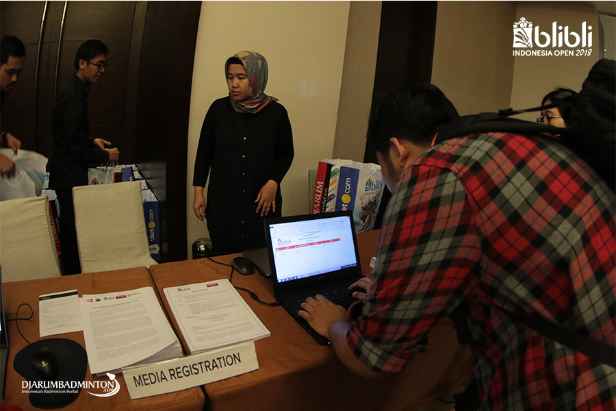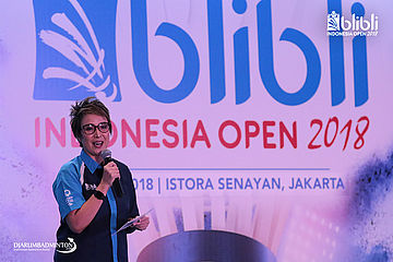 Yuni Kartika Saat Memandu Jalannya Press Conference Blibli Indonesia Open 2018