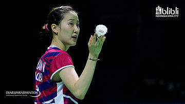 Chang Ye Na (KOR) meminta pergantian shuttlecock