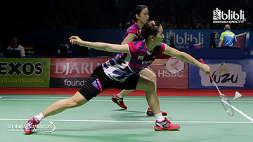 Chang Ye Na/Jung Kyung Eun (KOR) mengembalikan shuttlecock